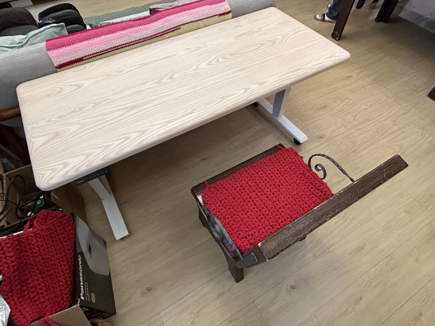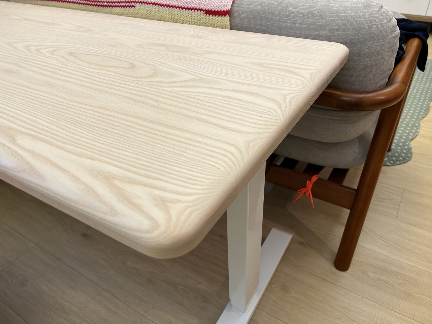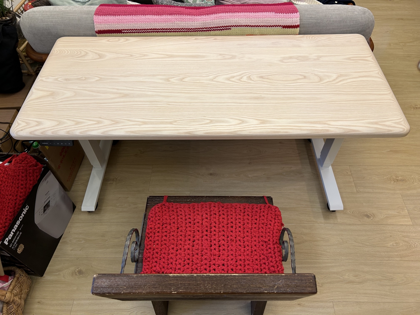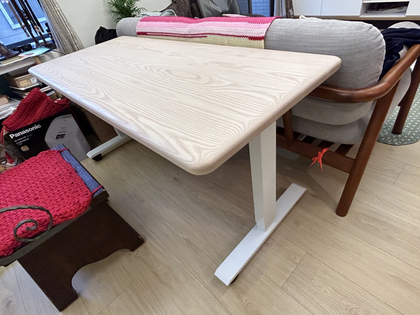 這張實木升降桌不僅滿足了她多樣的需求,也成為家庭中一處獨特的景觀。