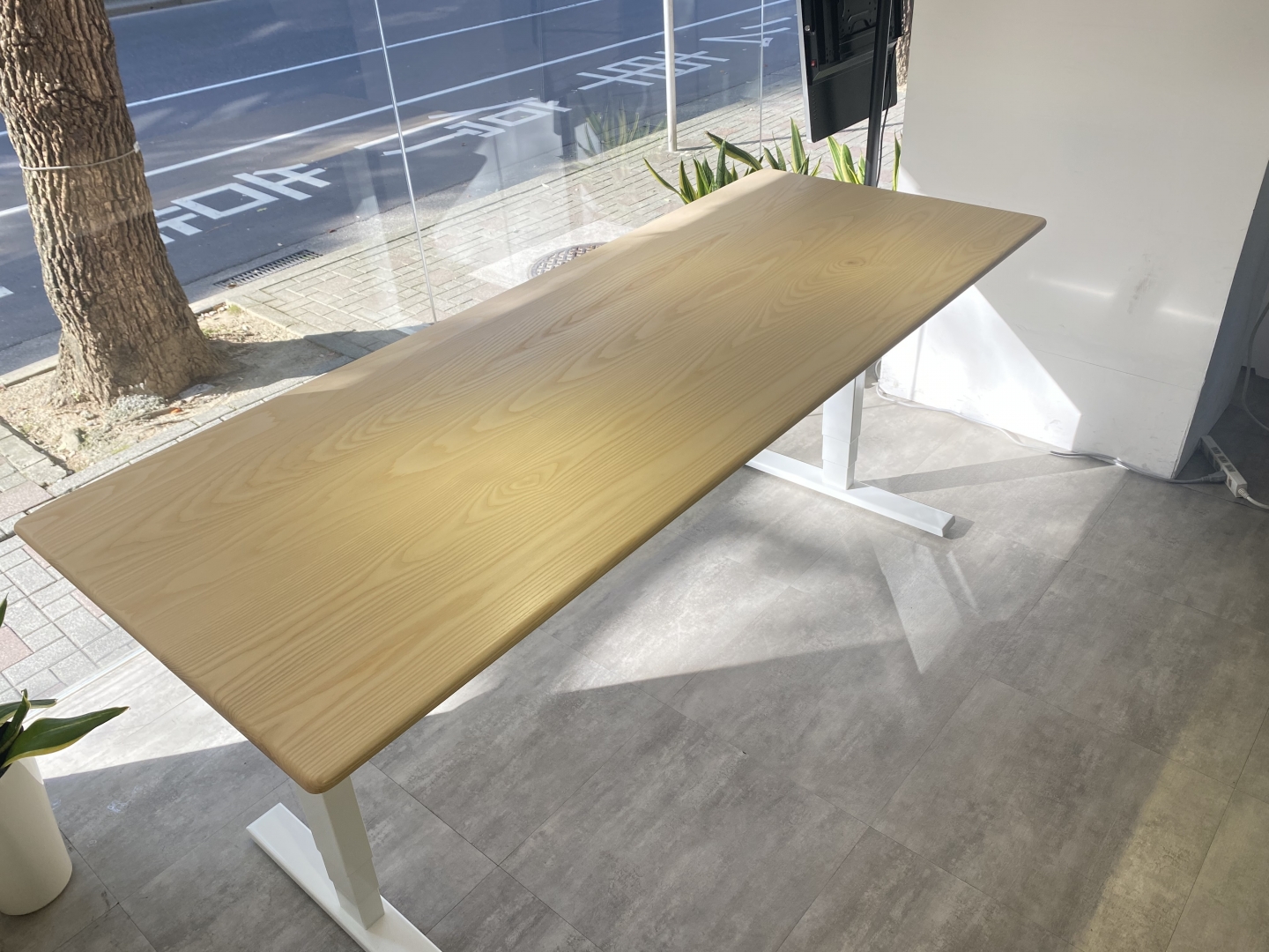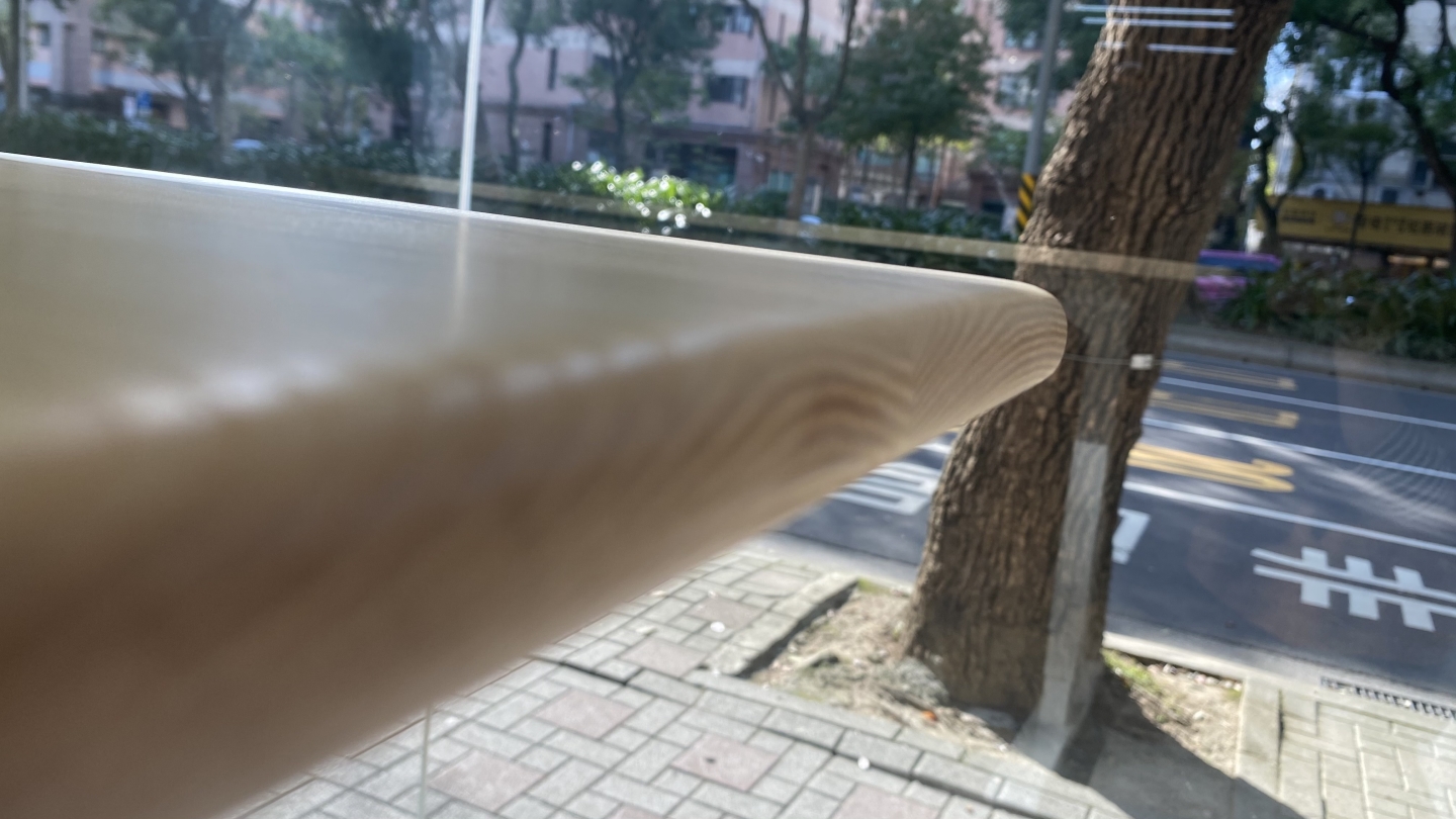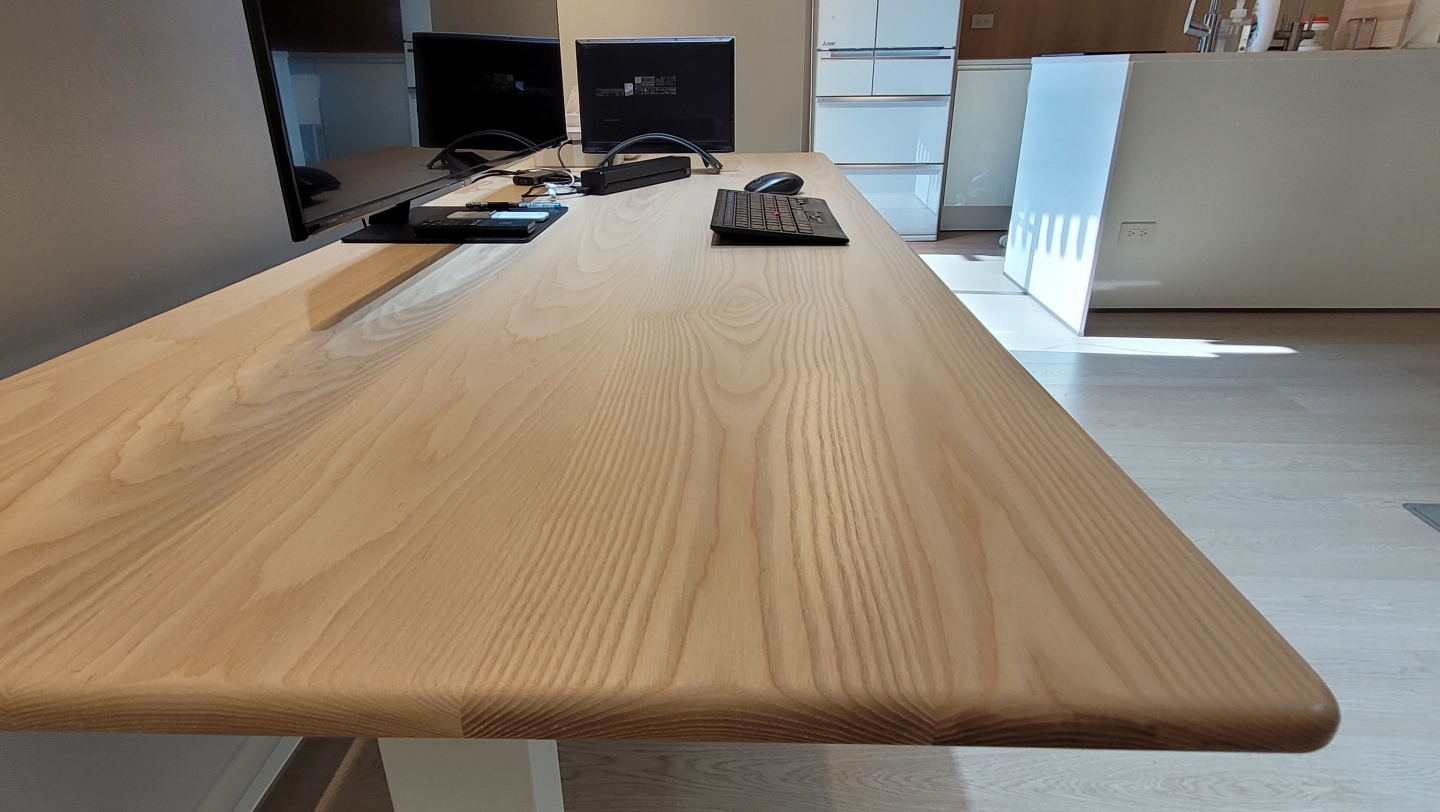 這對夫妻決定購買兩張桌子尺寸為180*65公分,材質選用特選級的優質梣木,厚度為2.1公分,充滿自然原始的紋理為家裡帶來清新的感受。